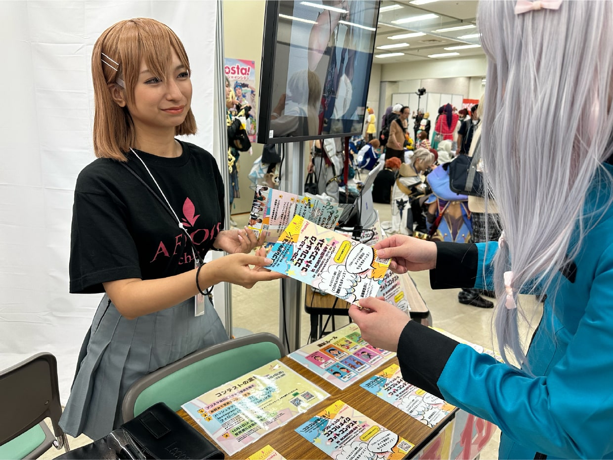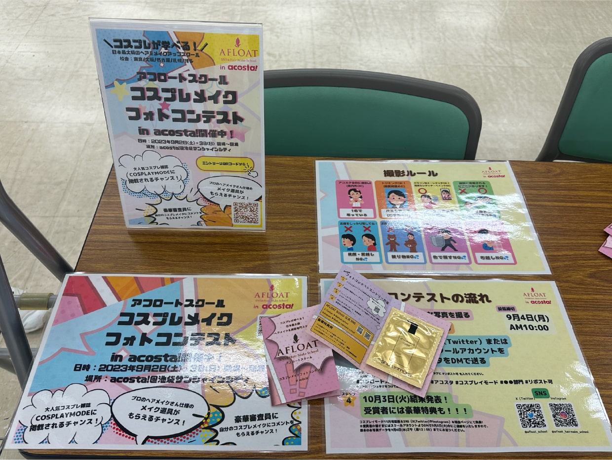 アフロートスクールがacosta!@池袋サンシャインシティに初出展!ブーススタッフとして生徒と講師も会場を歩き回り、コスプレイヤーさんにシュウウエムラのクレンジングオイルサンプルを無料配布。コスプレしながら楽しくフォトコンテストへの参加を募りました♪コスプレイヤーさんが当日会場で撮影してくれた写真をSNS(X(Twitter)・Instagram)に投稿する形式でフォトコンテストにエントリーをしていただき、大盛り上がりでした!