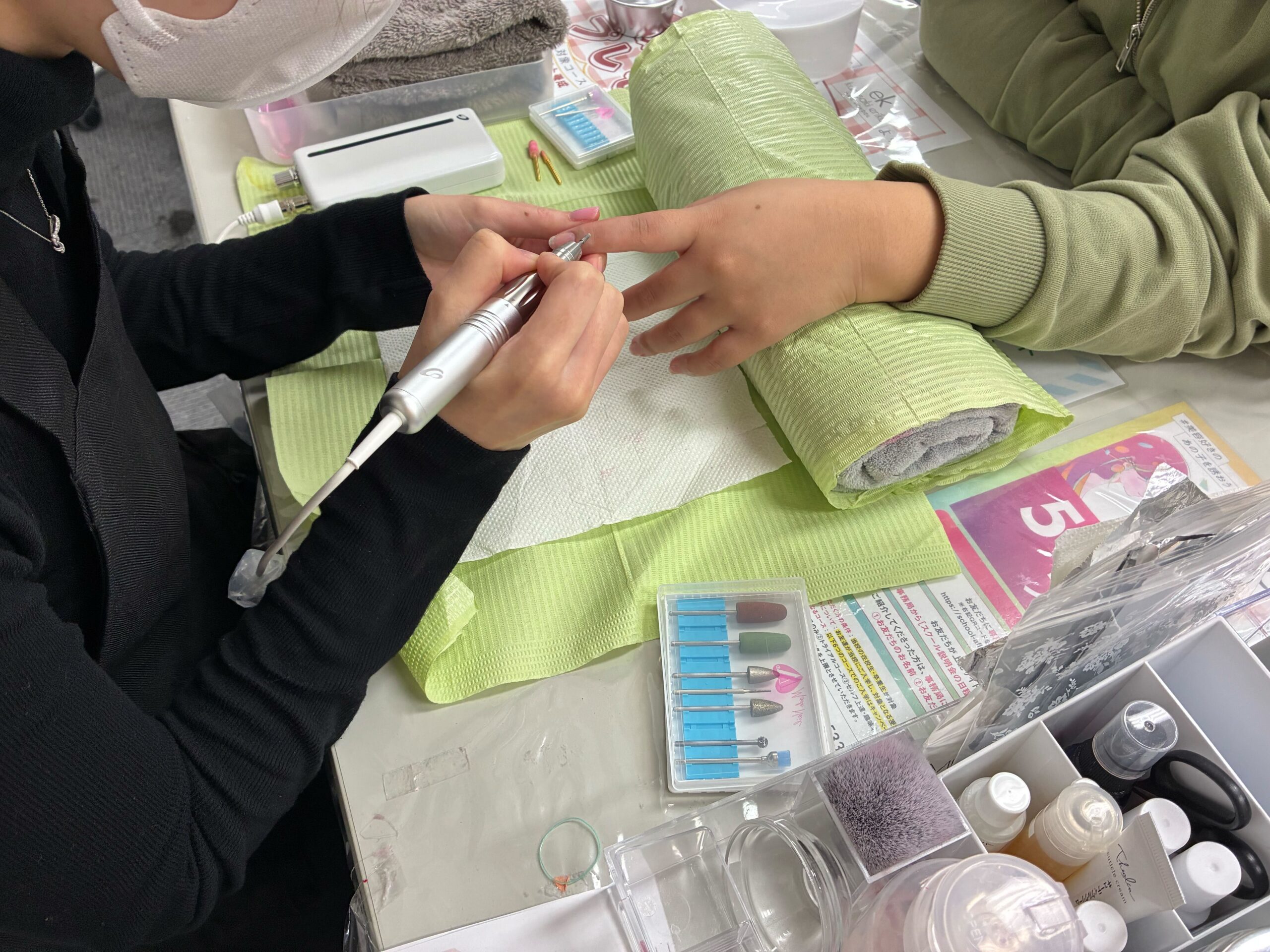 ネイル検定は「サロンワークの内容を体系化しまとめたもの」です。アフロートネイルスクール池袋校では、在学中からスチューデントサロンでサロンワークを経験することにより、実践的スキルが身に付くと同時により検定への理解を深めることができます。教室で受ける授業では学べない、貴重な実践体験となります。