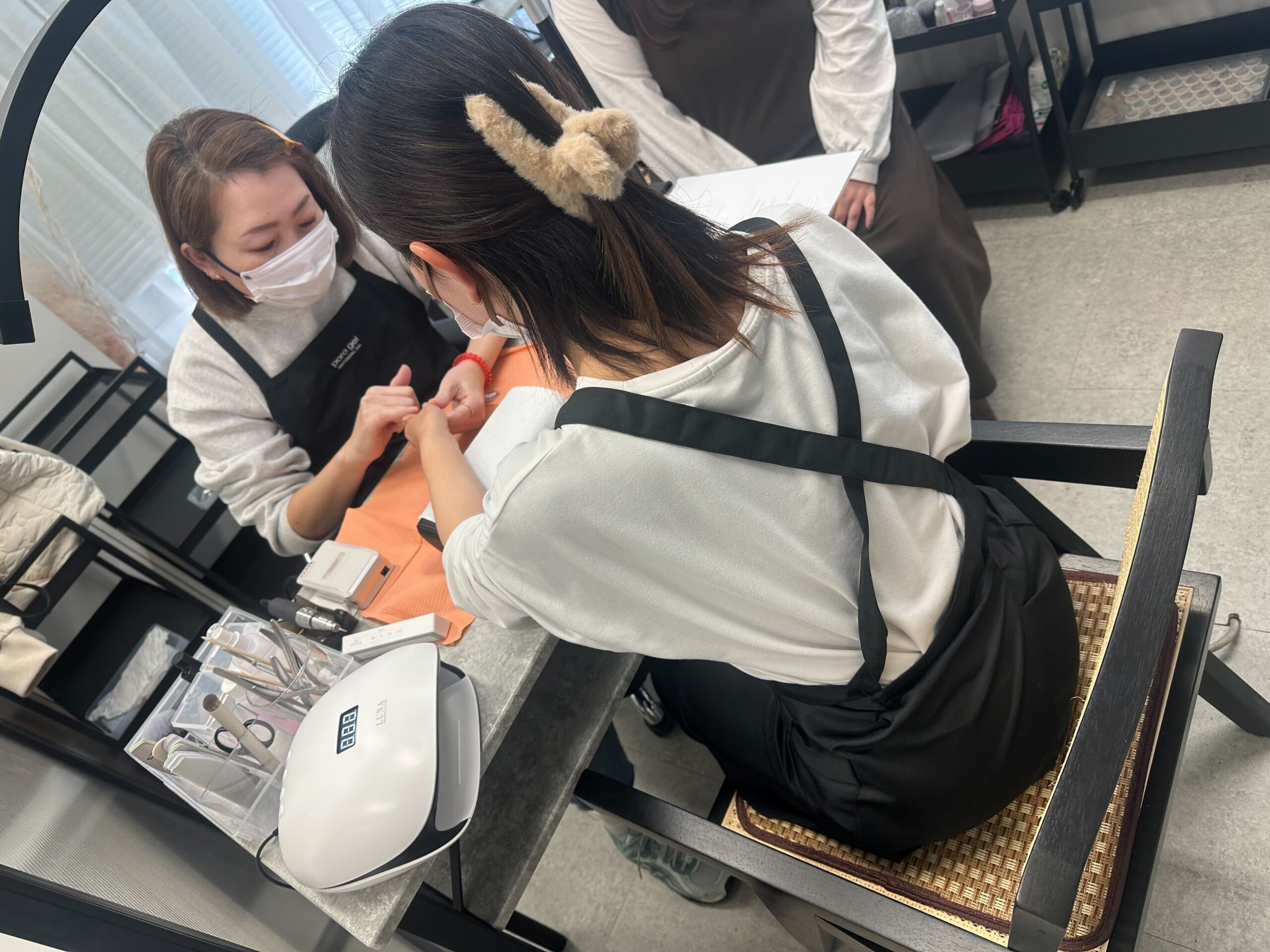 )のジェルをお持ちいただき、生徒のみなさんお一人お一人にニュアンスアートを教えていただきました😳✨