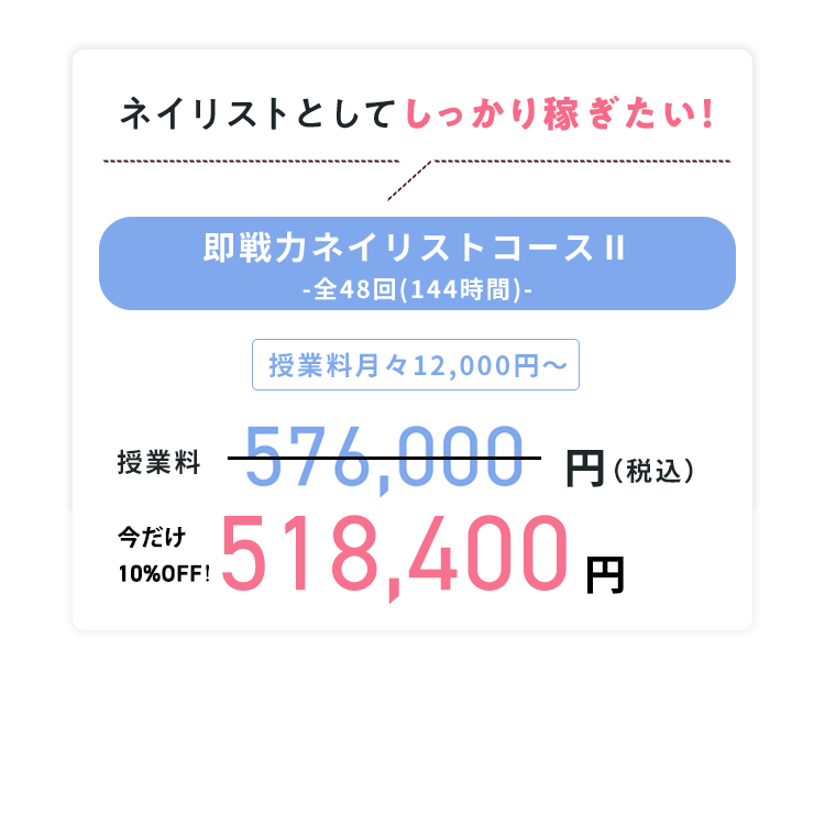 ※即戦力ネイリストコースⅡの場合
