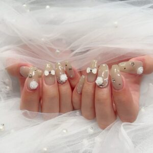 リボンや薔薇、ストーンを施したビジューネイル🌷